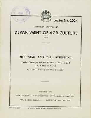 Leaflet No 2024 - Mulesing and tail stripping. Proved measures for the control of crutch and tail strike in sheep