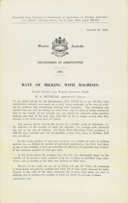 Leaflet No 1000 - Rate of milking with machines - Further results from Western Australian herds