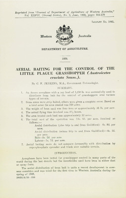 Leaflet No 1001 - Aerial baiting for the control of the Little Plague Grasshopper (Austroicetes cruciata Sauss)
